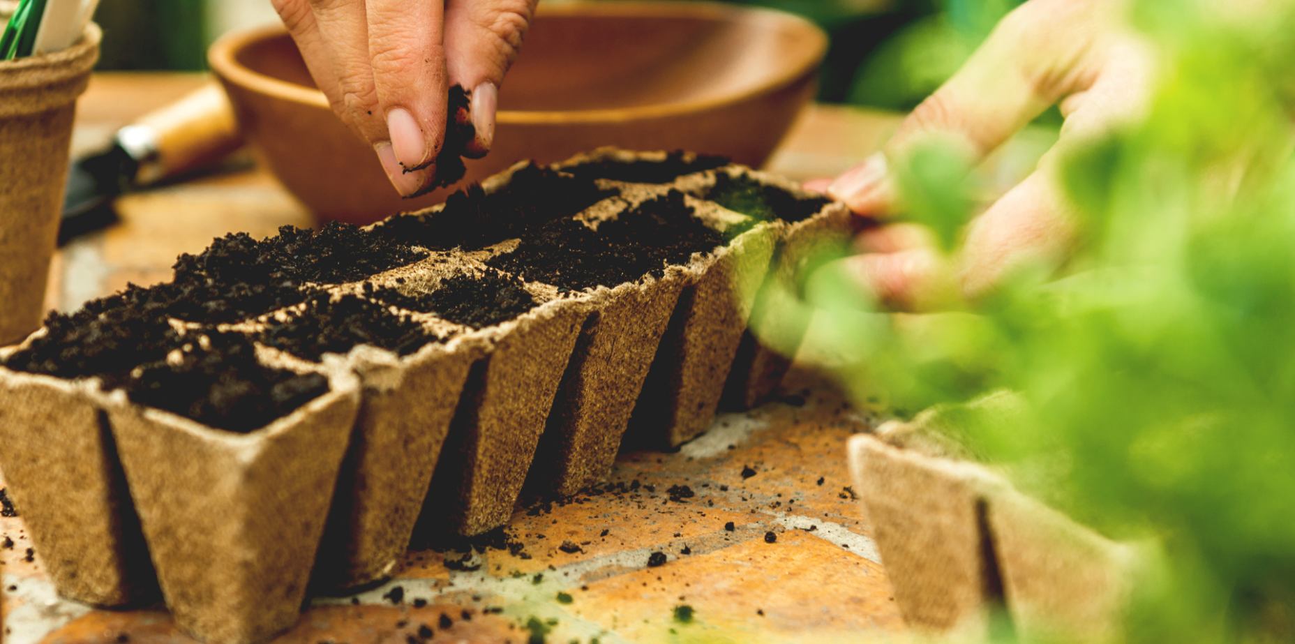 Plant it at the bar (peat pot, soil, seeds, water)