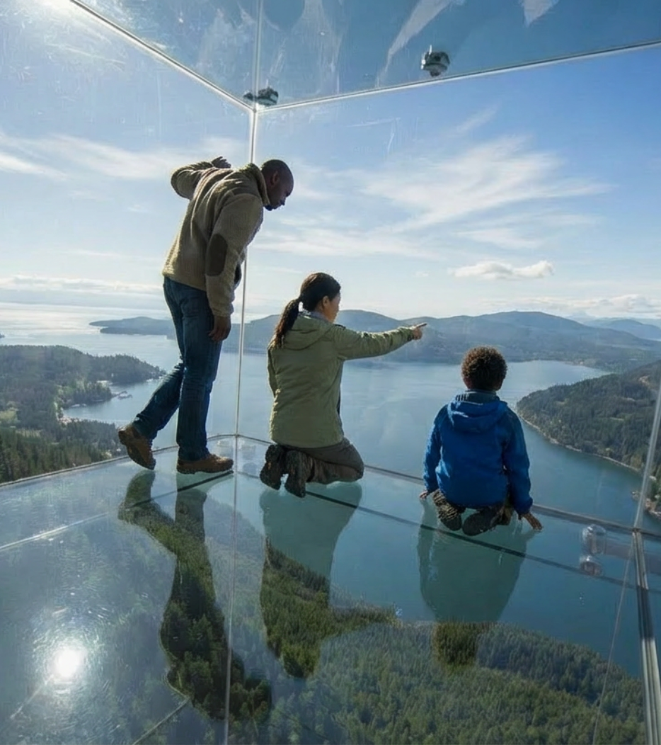 Extending beyond the edge, this enclosed cube is designed to give you the feeling of floating mid-air above Vancouver Island’s rugged coastal landscape.